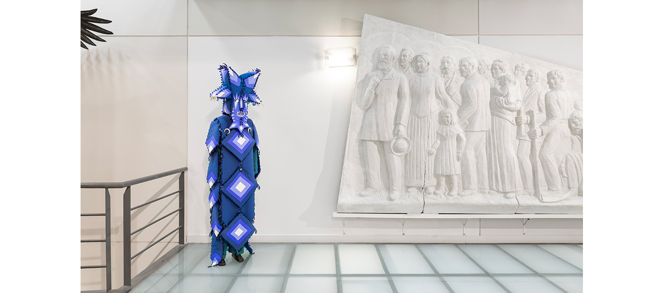 Diablada, pintura sobre traje textil con piezas de acrílico, 203x100x80cm, 108 Salón Nacional de Artes Visuales, Casa del Bicentenario, 2019